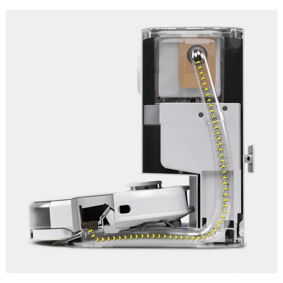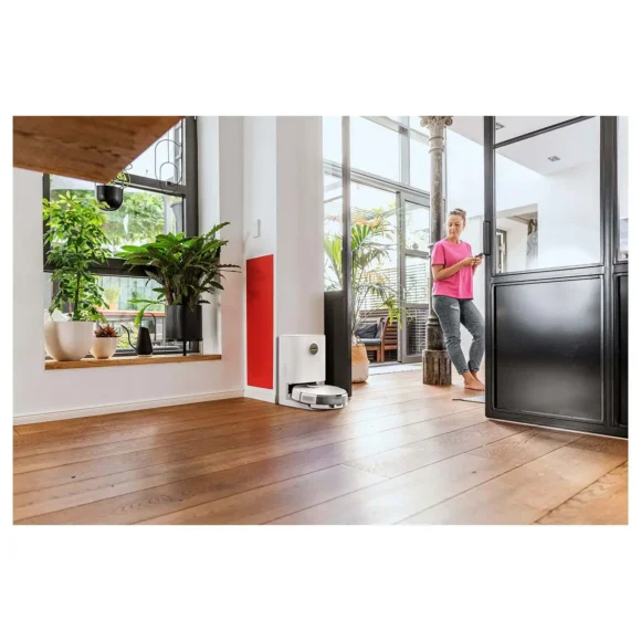 Das Gerät ist per App steuerbar und bietet smarte Services wie Timer, Sprachausgabe und Echtzeit-Status. Im Lieferumfang sind zwei Wischtücher, zwei Seitenbürsten, zwei Filter, Reinigungsbürste und Absaugstation enthalten. Zubehör wie Filterbeutel, Wischtuchsets und Ersatzteile sind separat erhältlich.