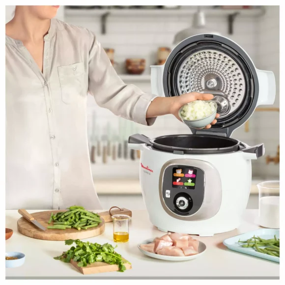 Der Cookeo+ von Moulinex ist ein smarter Multikocher mit intuitivem und intelligentem Bedienfeld, der Ihnen vier hilfreiche Kochprogramme zur Verfügung stellt: Zutaten / Rezepte / Manueller Modus / Favoriten-Modus. Mit sechs Kocheinstellungen und 180 vorprogrammierten Rezepten ist der Cookeo+ Multikocher der perfekte Kochassistent für eine schnelle und unkomplizierte Zubereitung Ihrer Mahlzeiten. Einfach auswählen, anklicken und den Anleitungen Schritt für Schritt folgen.